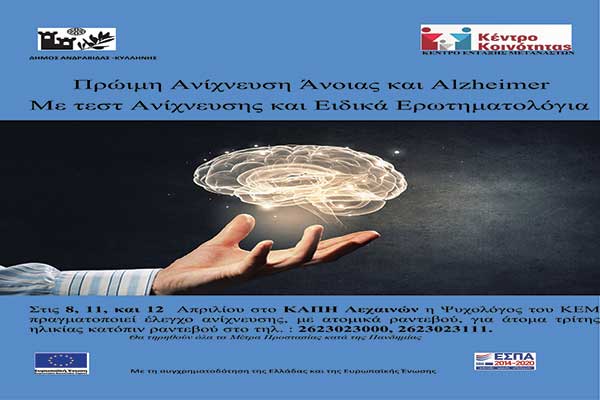 Δήμος Ανδραβίδας-Κυλλήνης: Ατομικές Συνεδρίες πρώιμης ανίχνευσης Άνοιας και Alzheimer