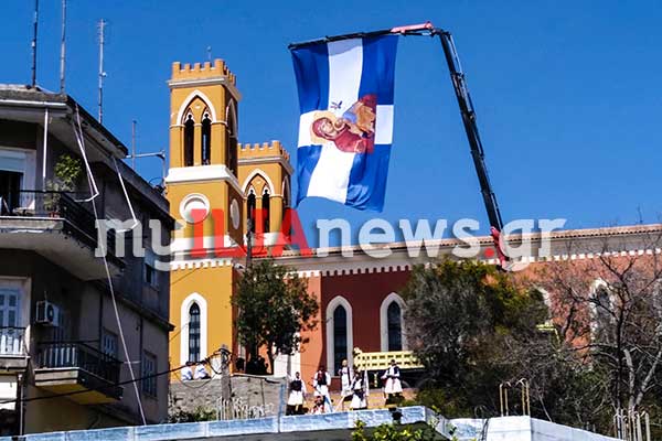 Πύργος: Τεράστια ελληνική σημαία κυματίζει στον Ι.Ν.Αγίας Κυριακής για την 25η Μαρτίου [PHOTOS]