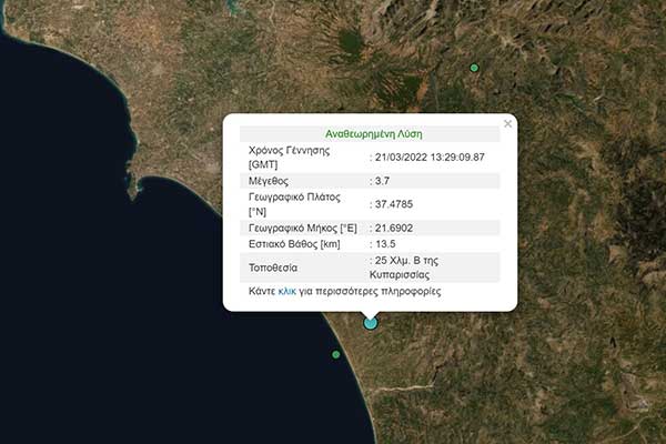 Ηλεία: Σεισμός 3,7 Ρίχτερ - Κοντά στη Ζαχάρω το επίκεντρο