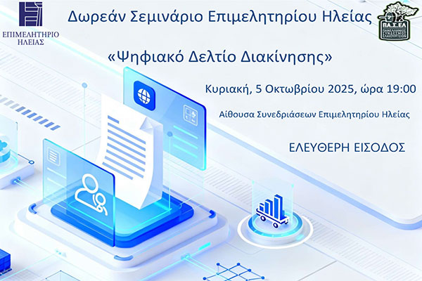 Δωρεάν Σεμινάριο του Επιμελητηρίου Ηλείας για το «Ψηφιακό Δελτίο Διακίνησης»
