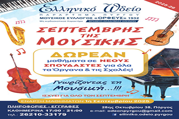 Ελληνικό Ωδείο Πύργου-Σεπτέμβρης της Μουσικής: Αναζητώντας το μουσικό μας όνειρο