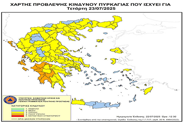 Πολύ υψηλός κίνδυνος πυρκαγιάς την Τετάρτη σε περιοχές της Περιφέρειας Δυτικής Ελλάδας