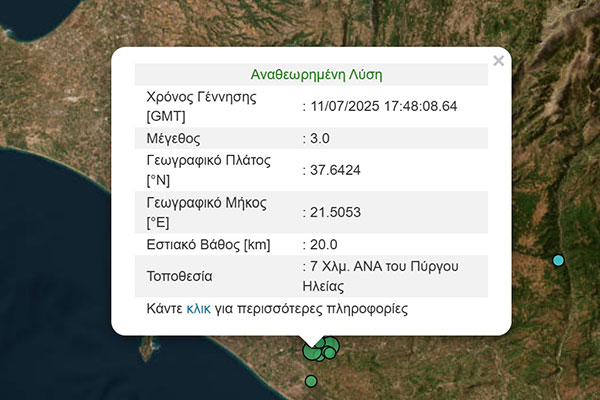 Ηλεία: Nέες σεισμικές δονήσεις - Κοντά στον Πύργο τα επίκεντρα