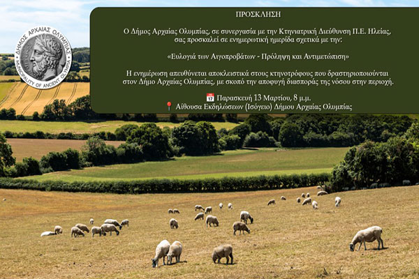 Αρχαία Ολυμπία: Ημερίδα για την ευλογιά των αιγοπροβάτων την Παρασκευή 13 Μαρτίου