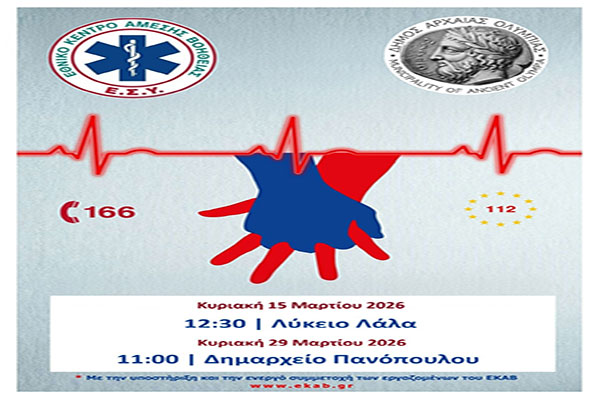 Δήμος Αρχαίας Ολυμπίας: Ευαισθητοποίηση & Εκπαίδευση πληθυσμού σε θέματα Πρώτων Βοηθειών