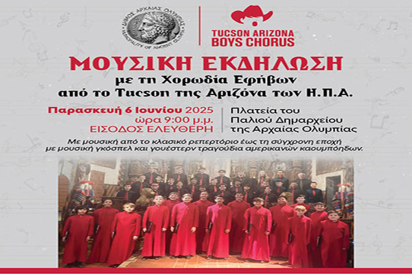 Αρχαία Ολυμπία: Χορωδία Εφήβων από την Αριζόνα στην Πλατεία Παλιού Δημαρχείου