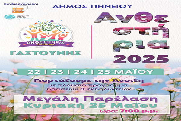 Ο παλμός της Άνοιξης «χτυπά» στον Δήμο Πηνειού από την Πέμπτη 22 έως την Κυριακή 25 Μαΐου