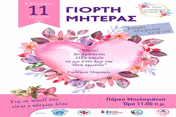 Με μια ξεχωριστή γιορτή ο Δήμος Ήλιδας θα τιμήσει στην πλατεία Μπελογιάννη την Κυριακή 11 Μαΐου 2025, την Γιορτή της Μητέρας