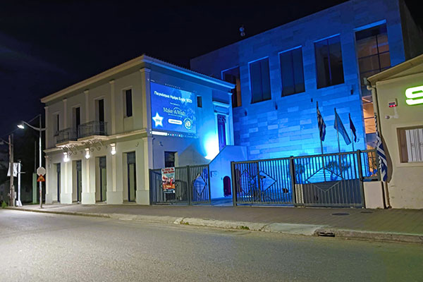Ο Πολυχώρος Πολιτισμού Αμαλιάδας φωταγωγήθηκε για μια βραδιά στα χρώματα του MAKE A WISH, με πρωτοβουλία του Δήμου Ήλιδας