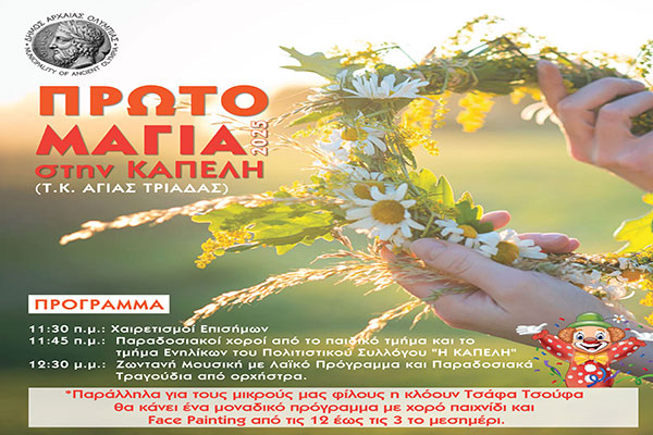 Ο Δήμος Αρχαίας Ολυμπίας γιορτάζει την Πρωτομαγιά στην Κάπελη