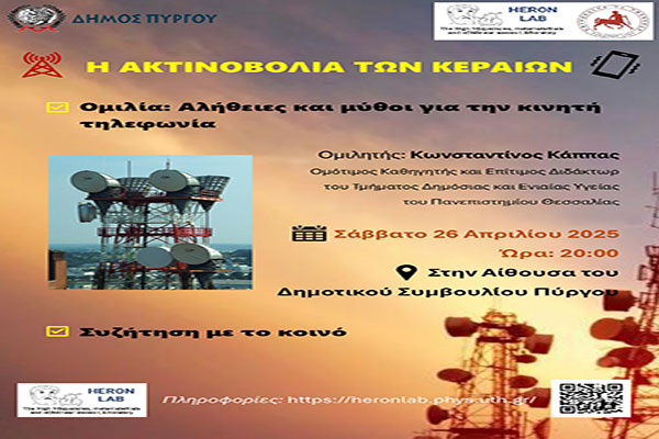 Δήμος Πύργου: Εκδήλωση με θέμα: «Η ακτινοβολία των κεραιών» το Σάββατο 26 Απριλίου
