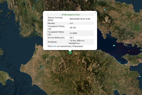 Ηλεία: Αισθητός σεισμός 4,6 Ρίχτερ - Στα Καλάβρυτα το επίκεντρο