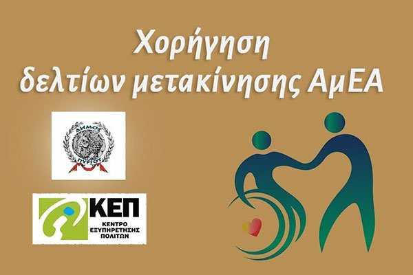 ΚΕΠ Δήμου Πύργου: Υποβολή αιτήσεων χορήγησης Δελτίων Μετακίνησης ΑμεΑ