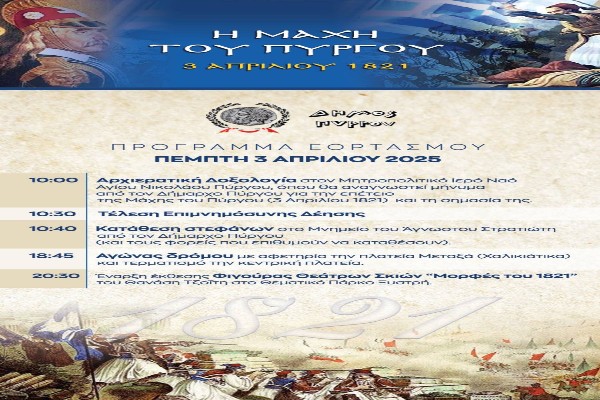 Ο Δήμος Πύργου τιμά τους πεσόντες στη «Μάχη του Πύργου» (03/04/1821)