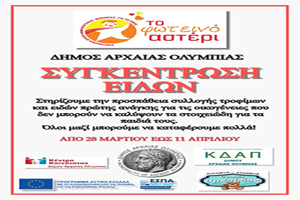 Αρχαία Ολυμπία: Συγκέντρωση Ρούχων, Παιχνιδιών, Τροφίμων & Ειδών Πρώτης Ανάγκης για «Το Φωτεινό Αστέρι»