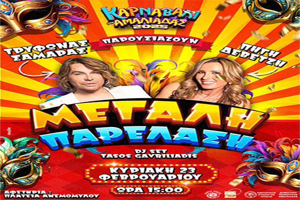 Δ.Ήλιδας: Ο Τρύφωνας Σαμαράς και η Ολυμπιονίκης Πηγή Δεβετζή θα παρουσιάσουν τη μεγάλη παρέλαση του «Καρναβαλιού Αμαλιάδας», την Κυριακή 23 Φεβρουαρίου