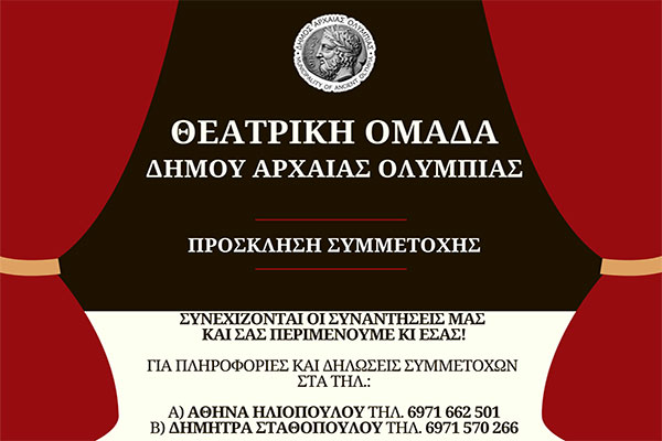 Δήμος Αρχαίας Ολυμπίας: Δήλωση συμμετοχής στην Θεατρική Ομάδα του Δήμου