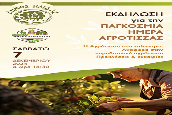 Δ.Ήλιδας: Εκδήλωση - αφιερωμένη στη γυναίκα αγρότισσα θα πραγματοποιηθεί το ερχόμενο Σάββατο στον Πολυχώρο Πολιτισμού Αμαλιάδας