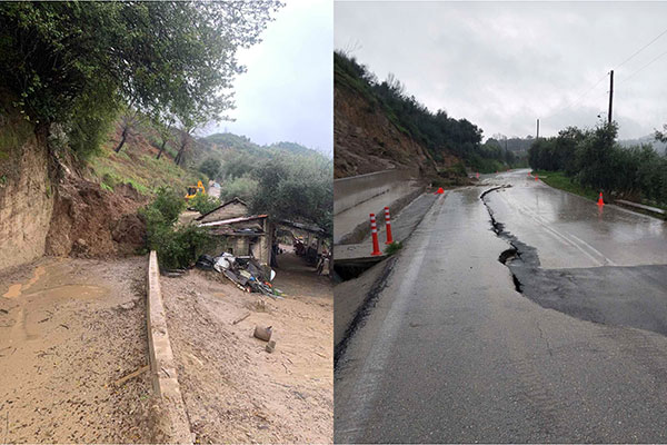 Δήμος Ανδρίτσαινας-Κρεστένων: Επικίνδυνα σημεία στο οδικό δίκτυο από τις ραγδαίες βροχοπτώσεις