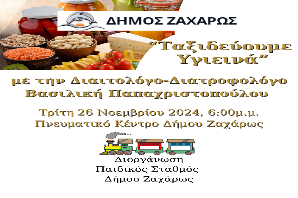 Δήμος Ζαχάρως: Την Τρίτη 26/11 η εκδήλωση «Ταξιδεύουμε...υγιεινά»