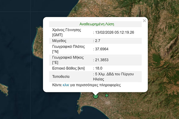 Ηλεία: Σεισμός 2,7 Ρίχτερ - Κοντά στον Πύργο το επίκεντρο