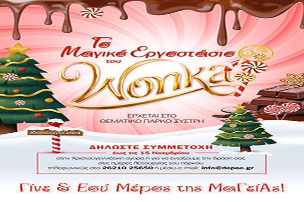 ΔΕΠ ΑΕ ΟΤΑ: Αυτά τα Χριστούγεννα έρχεται "Το Μαγικό Εργοστάσιο του Wonka" στο Θεματικό Πάρκο Ξυστρή στον Πύργο