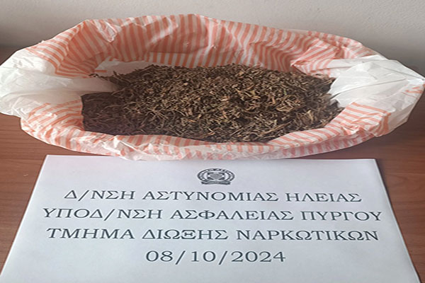Ηλεία: Συνελήφθη άνδρας για κατοχή ναρκωτικών - Κατασχέθηκαν 142 γραμμάρια κάνναβης