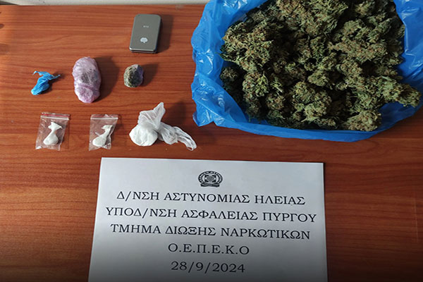 Πύργος: Συνελήφθη με 241 γρ. κάνναβης, 11 γρ. κοκαΐνης και ηλεκτρονική ζυγαριά