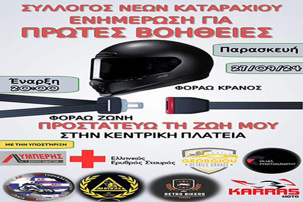 Σύλλογος Νέων Καταραχίου: Ενημέρωση για πρώτες βοήθειες σε περίπτωση τροχαίου ατυχήματος στις 27/9