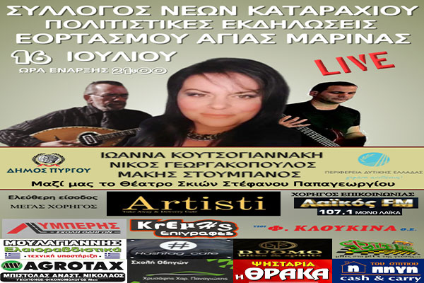 Σύλλογος Νέων Καταραχίου: Πολιτιστικές εκδηλώσεις για τον εορτασμό της Αγίας Μαρίνας στις 16/7