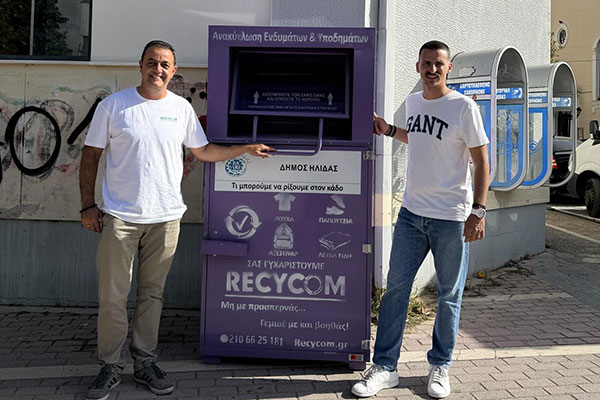 Στην εγκατάσταση των πρώτων 10 μωβ κάδων για την ανακύκλωση ενδυμάτων και υποδημάτων, προχώρησε ο Δ. Ήλιδας σε συνεργασία με την εταιρία RECYCOM
