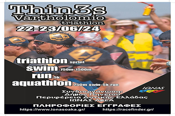 Thin3s Vartholomio Triathlo: Το αθλητικό γεγονός του φετινού καλοκαιριού στον Δήμο Πηνειού 22 και 23 Ιουνίου