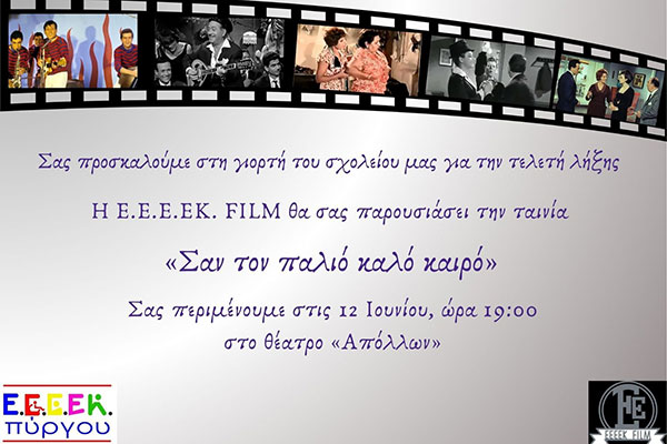 ΕΕΕΕΚ Πύργου: Αναβάλλεται για την Παρασκευή 14/6 η γιορτή για τη λήξη της σχολικής χρονιάς στο θέατρο «Απόλλων»