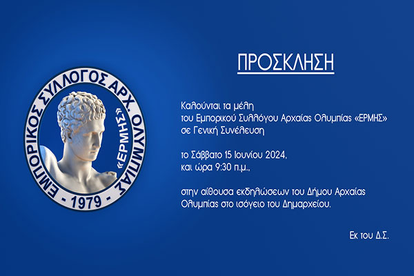 Εμπορικός Σύλλογος Αρχαίας Ολυμπίας «ΕΡΜΗΣ»: Γενική Συνέλευση το Σάββατο 15 Ιουνίου