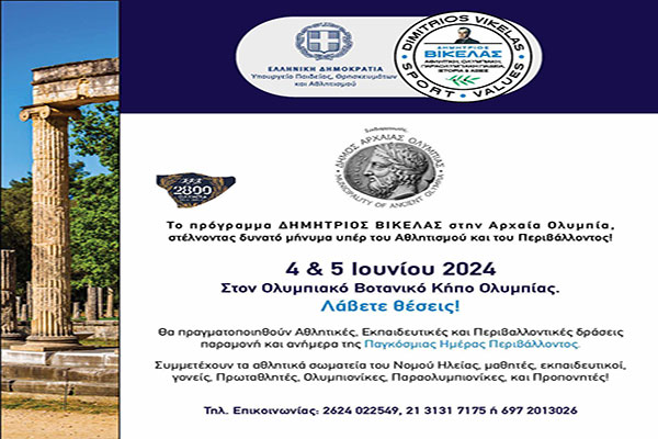 Δήμος Αρχαίας Ολυμπίας - Πρόγραμμα Βικέλας: Δυνατό μήνυμα υπέρ του Αθλητισμού και του Περιβάλλοντος