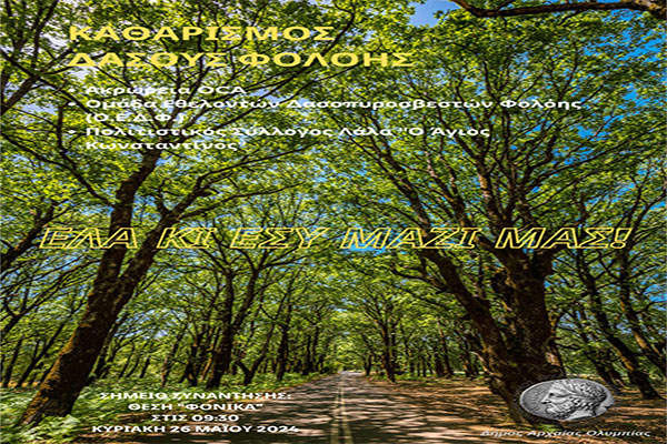 Δήμος Αρχαίας Ολυμπίας: Εθελοντική δράση καθαρισμού του Δρυοδάσους Φολόης