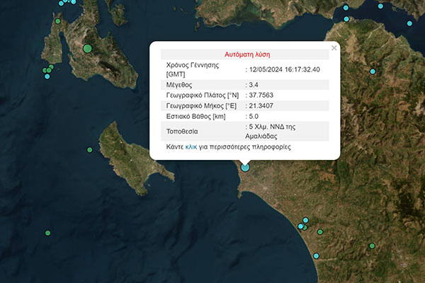 Ηλεία: Σεισμική δόνηση 3,4 Ρίχτερ - Κοντά στην Αμαλιάδα το επίκεντρο