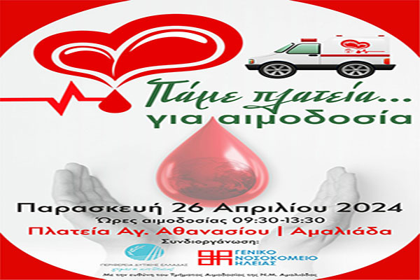 Π.Ε. Ηλείας: «Πάμε πλατεία… για αιμοδοσία» στην Αμαλιάδα