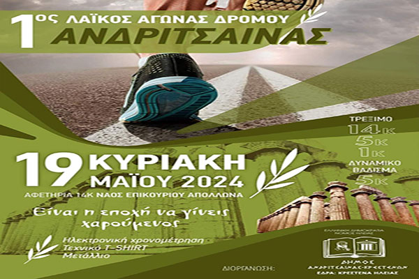 Τον 1ο Λαϊκό Αγώνα Δρόμου Ανδρίτσαινας διοργανώνει ο Δήμος Ανδρίτσαινας-Κρεστένων