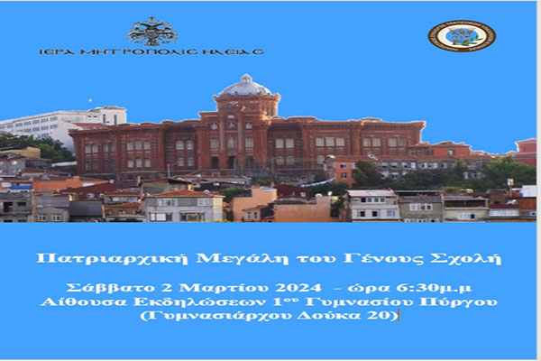 Πολιτιστικός Σύλλογος Τραπεζικών N.Ηλείας: Στις 2 Μαρτίου η προβολή του ντοκιμαντέρ «Η Πατριαρχική Μεγάλη του Γένους Σχολή» στο 1ο Γυμνάσιο Πύργου