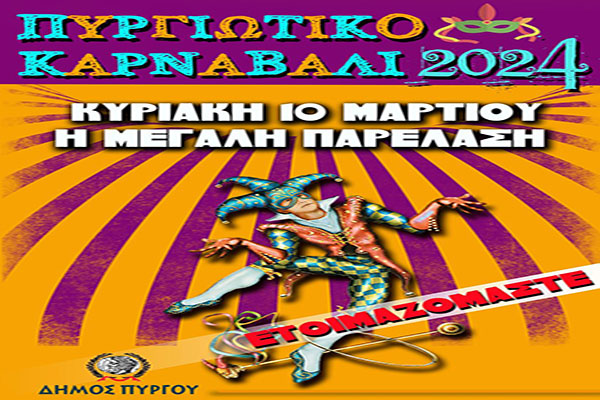 ΠΥΡΓΙΩΤΙΚΟ ΚΑΡΝΑΒΑΛΙ 2024: Έναρξη των αποκριάτικων εκδηλώσεων 25 Φεβρουαρίου