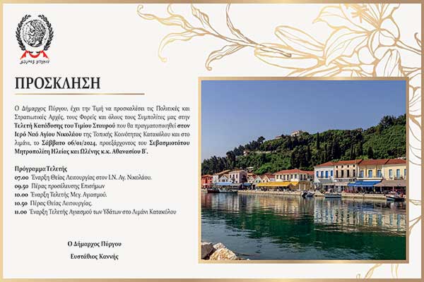 Δήμος Πύργου: Πρόσκληση για τις εκδηλώσεις των Θεοφανίων στο Κατάκολο