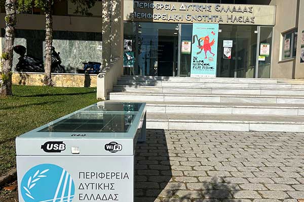 Έξυπνο ηλιακό παγκάκι στο Διοικητήριο της Π.Ε. Ηλείας με δωρεάν πρόσβαση στο διαδίκτυο και φόρτιση “έξυπνων” συσκευών [PHOTOS]