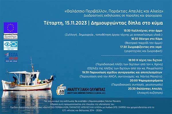 Αναπτυξιακή Ολυμπίας: Παραθαλάσσιες διαδραστικές εκδηλώσεις και συμπεράσματα για το έργο «Θαλάσσιο Περιβάλλον, Παράκτιες Απειλές και Αλιεία» την Τετάρτη στο Παλούκι Ήλιδας