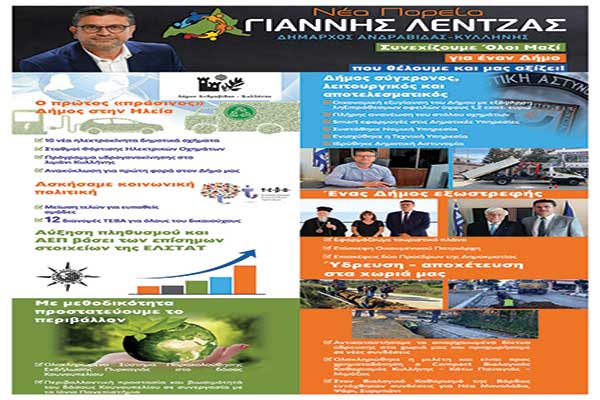 "Νέα Πορεία"-Γ.Λέντζας: «Ο πρώτος "πράσινος" δήμος στην Ηλεία»