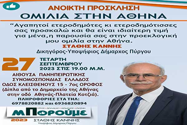 Στάθης Καννής - «ΜΠΟΡΟΥΜΕ»: Ανοικτή πρόσκληση-Ομιλία στην Αθήνα στις 27/9