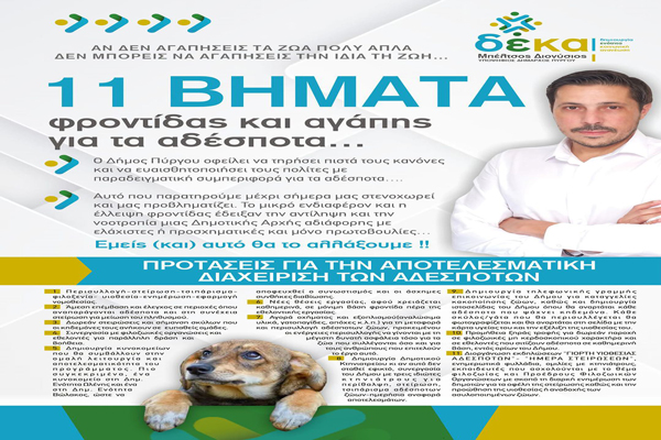 ΔΕΚΑ-Διον.Μπέλτσος: 11 Βήματα φροντίδας και αγάπης για τα αδέσποτα