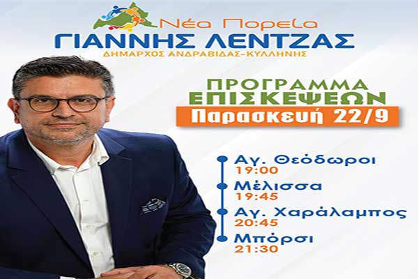 "Νέα Πορεία"-Γ.Λέντζας: Πρόγραμμα επισκέψεων - Παρασκευή 22/9