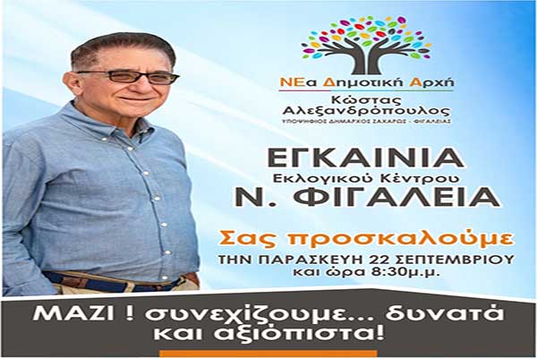 "ΝΕ.Δ.Α." - Κώστας Αλεξανδρόπουλος: Την Παρασκευή 22/9 τα εγκαίνια του εκλογικού κέντρου στη Ν.Φιγαλεία