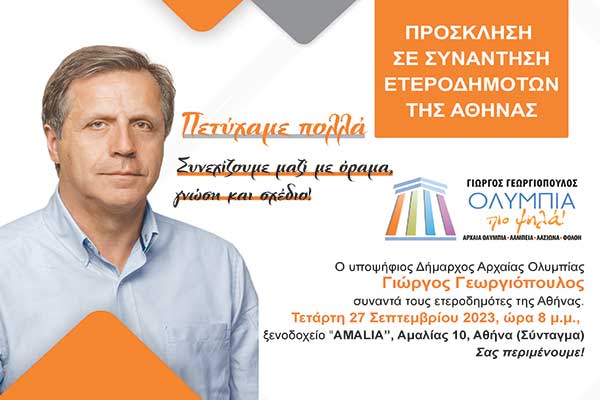 "ΟΛΥΜΠΙΑ πιο ψηλά!" - Γ. Γεωργιόπουλος: Πρόσκληση σε συνάντηση ετεροδημοτών της Αθήνας